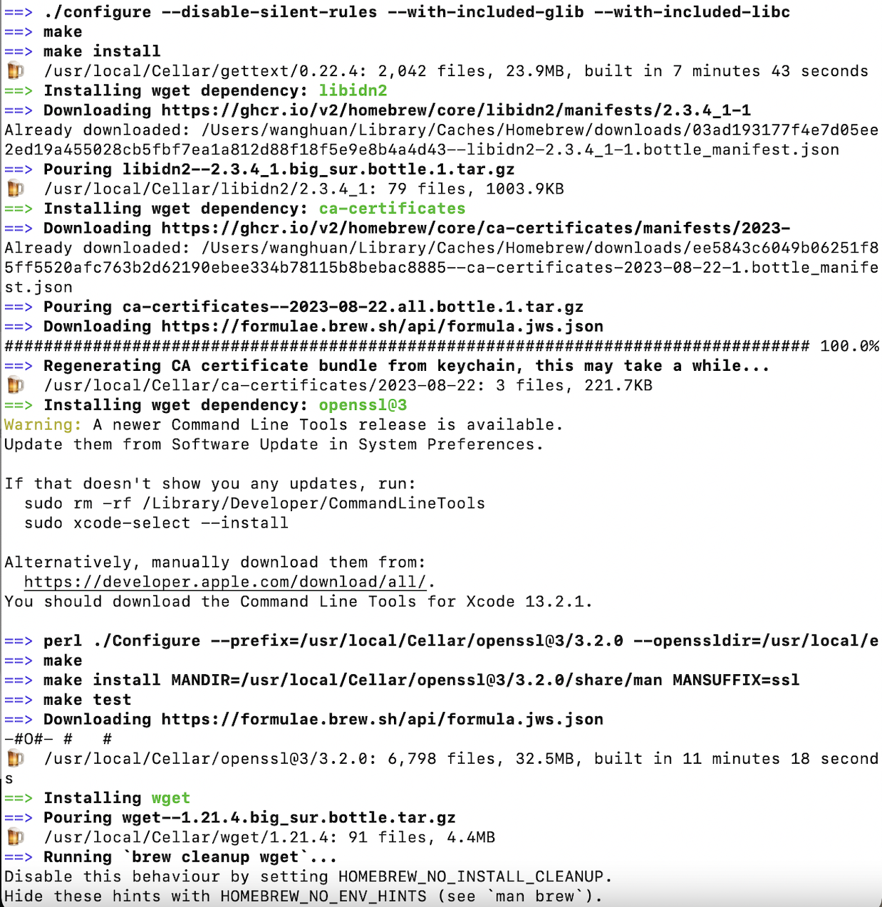 忘记什么安装wget了,大概是因为mac电脑想链接服务器下载文件,才安装的wget,但是后来找到了Royal TSX软件;