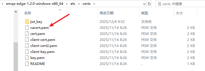 sslOpt.trustStore = "C:/Users/Administrator/Desktop/jsEngine/emqx-edge-1.2.0-windows-x86_64/etc/certs/cacert.pem"; // 注意Windows路径使用双反斜杠