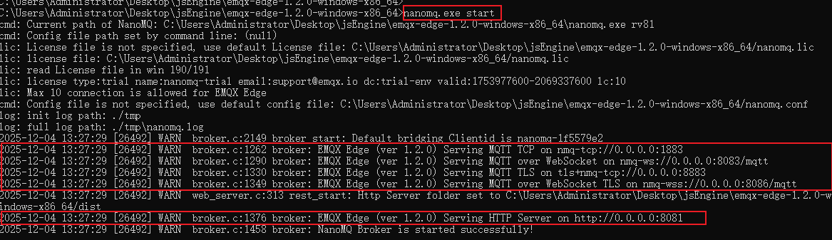 然后再打开cmd,cd到你把emqx-edge解压到的文件夹,然后执行