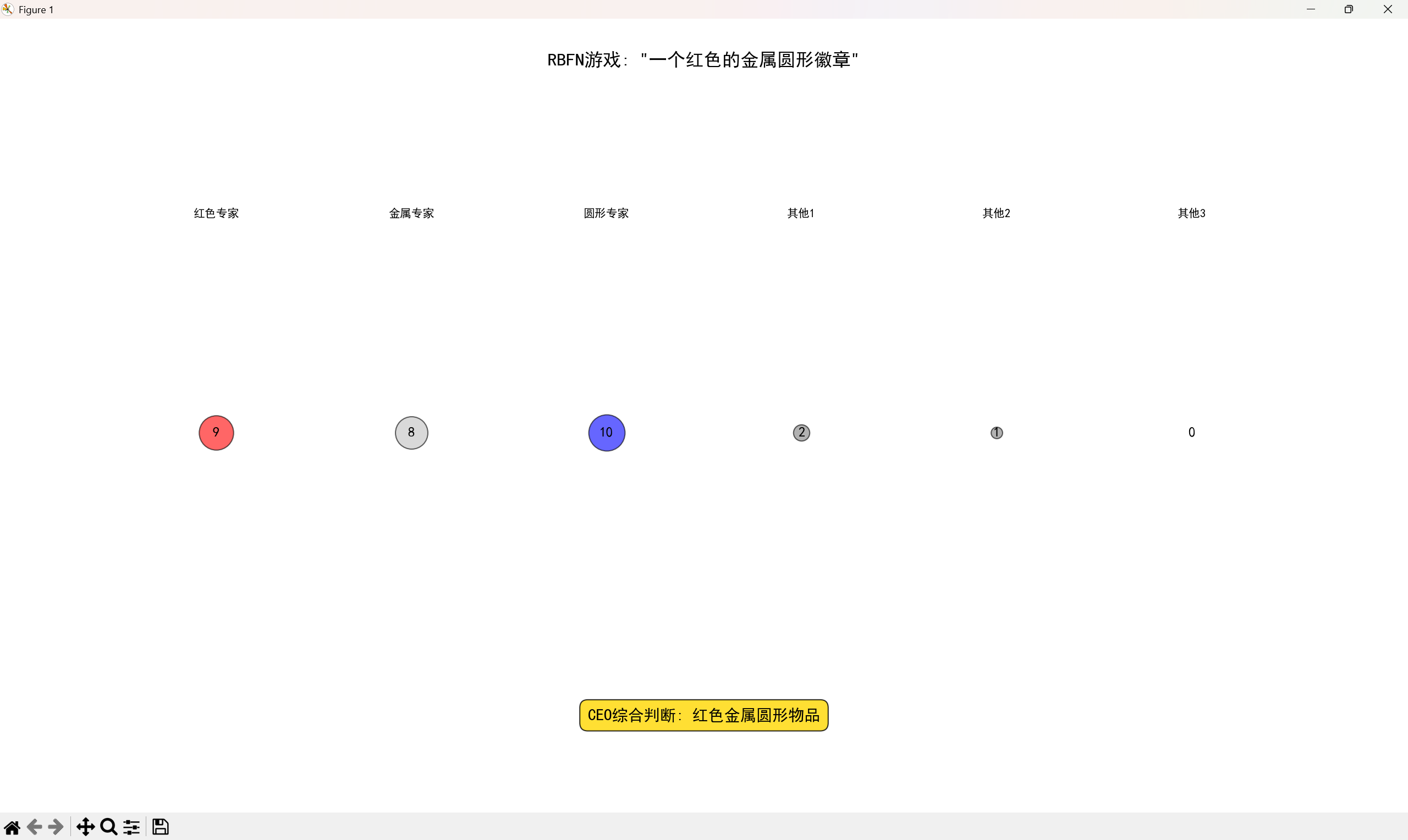 ax.set_title('RBFN游戏: "一个红色的金属圆形徽章"', fontsize=16, fontweight='bold')