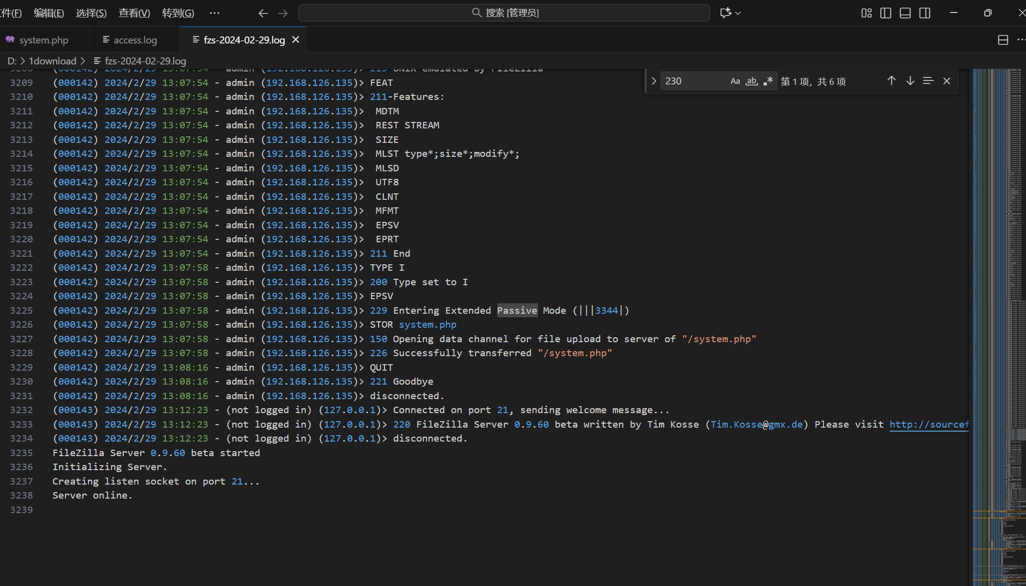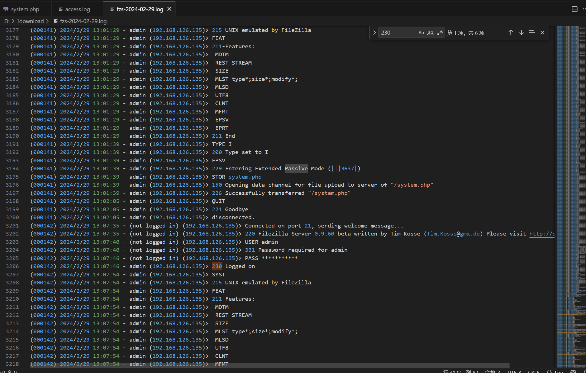 分析一下ftp,找一个230登录成功,