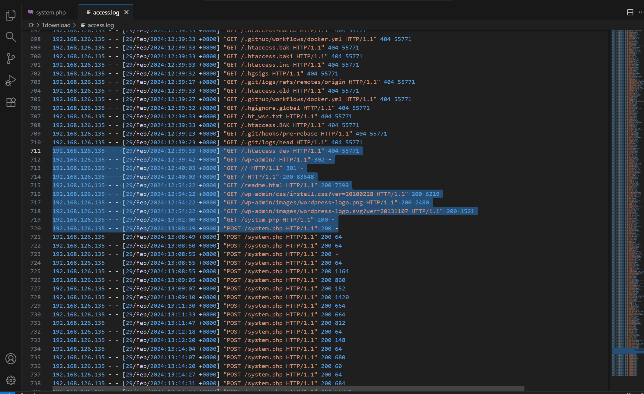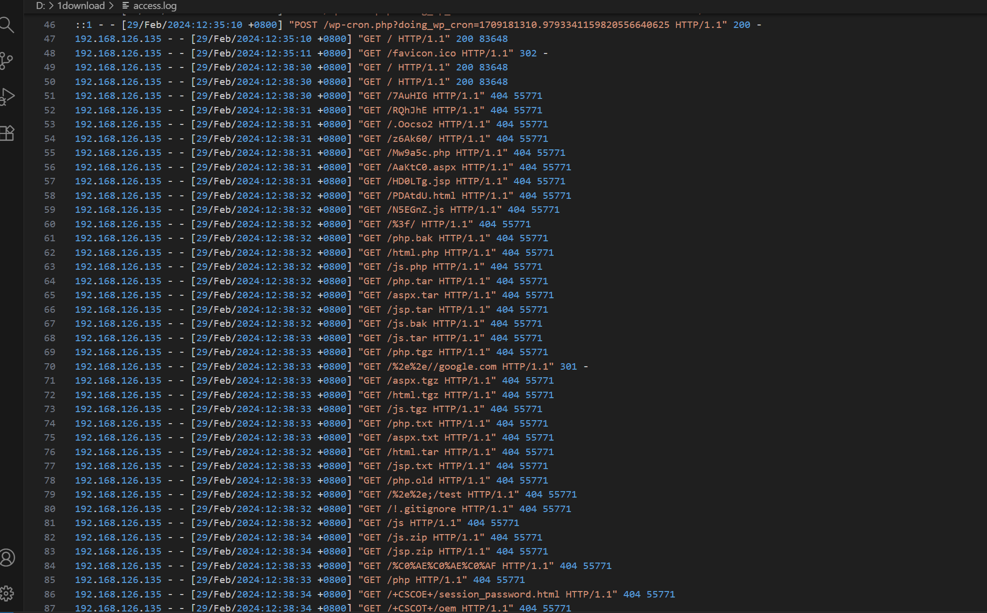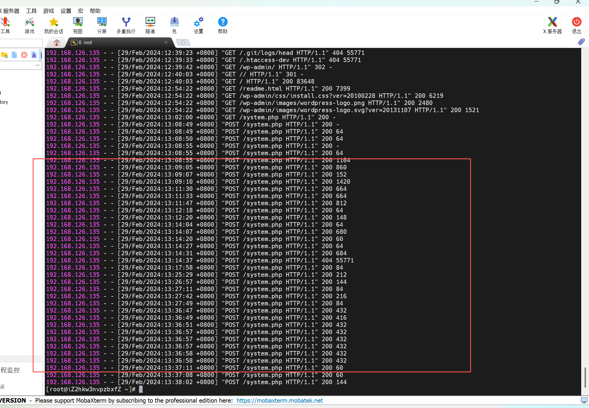 然后分析看来web的最后一条是29/Feb/2024:13:38:02,想着是不是往后登录的3389,但是看了日志,黑客在13:28:45就已经进来了