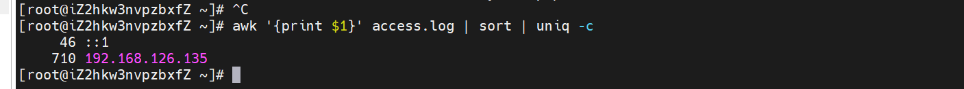 命令意思是ip地址==192.168.126.135和打印第7列,排序,去重后统计数量,然后按照uniq -c的结果排序,然后统计,然后打印前10行