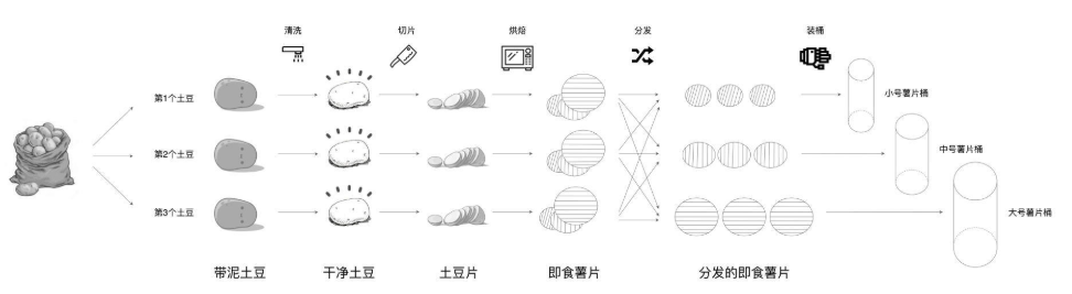 带泥土豆这总体就是RDD,每一个就是数据分片,带泥土豆是干净土豆的dependencies,清洗是干净土豆的compute。