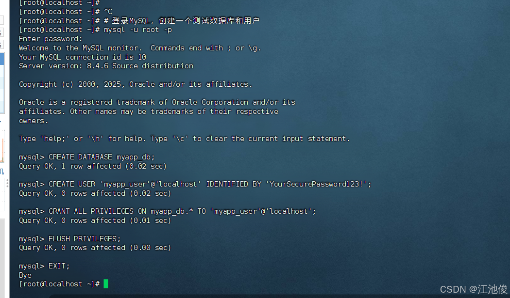 CREATE USER 'myapp_user'@'localhost' IDENTIFIED BY 'YourSecurePassword123!';