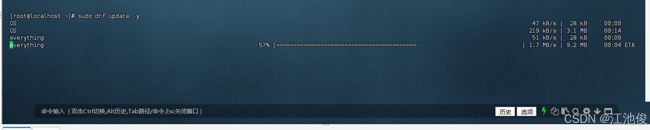 执行sudo dnf update -y,可以看到包下载速度得到了质的飞跃,系统很快更新到了最新状态。