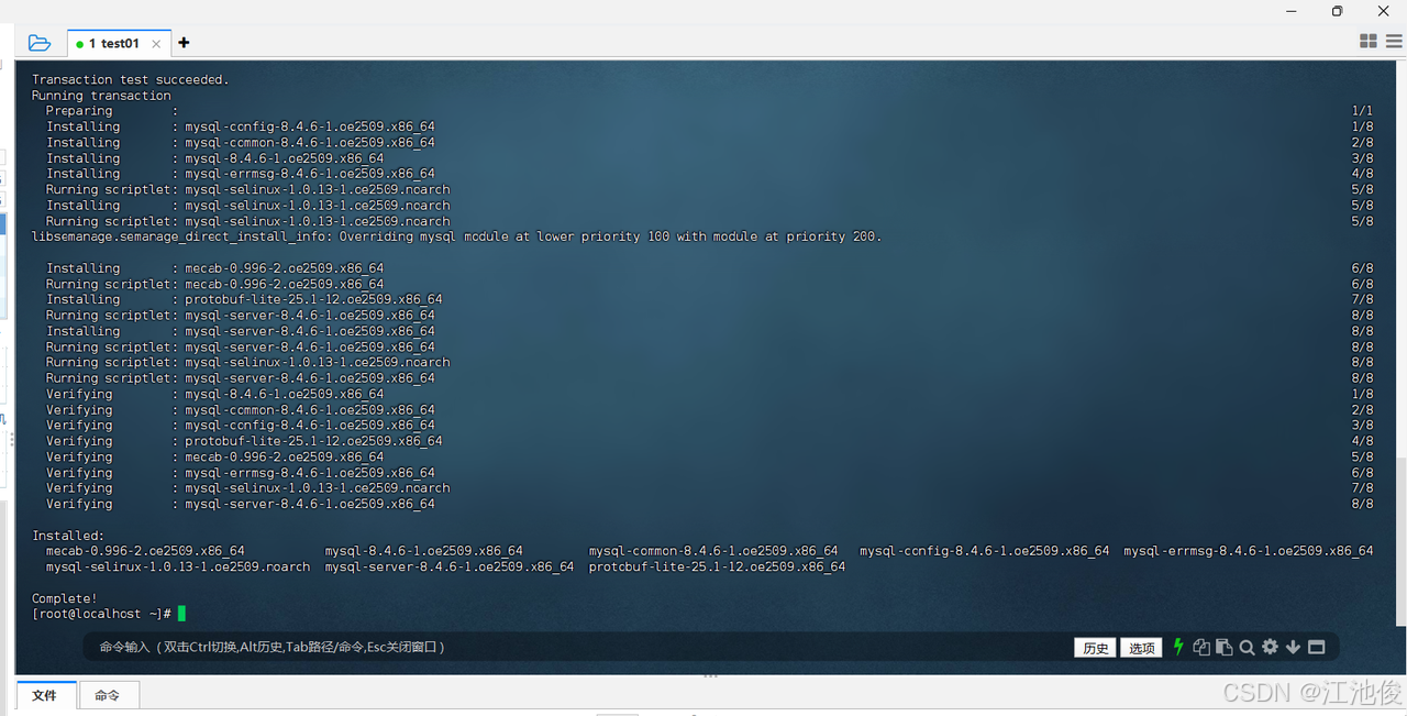 我使用的依然是openEuler-25.09-x86_64-dvd.iso。为了追求极致的性能,在安装时我选择了"最小安装",这为我们提供了一个纯净、无任何冗余的系统起点。安装过程快速且顺利,大约10分钟后,我便进入了命令行界面。