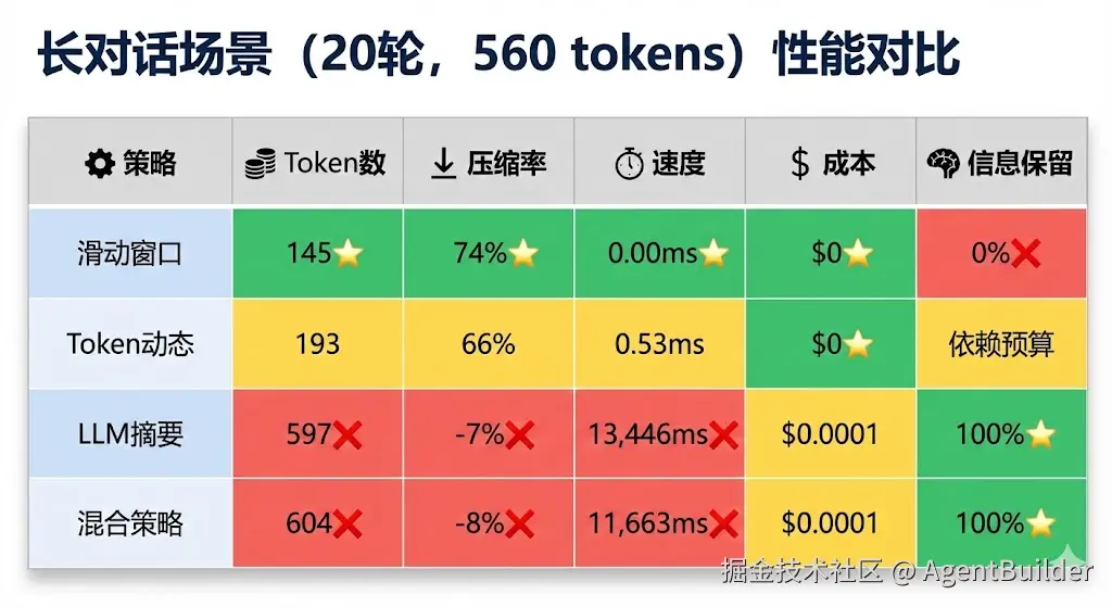 | 对话≥30轮 | LLM摘要 | 唯一正收益 |