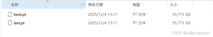 | best.pt | 验证集表现最好的模型 → 部署用它 |