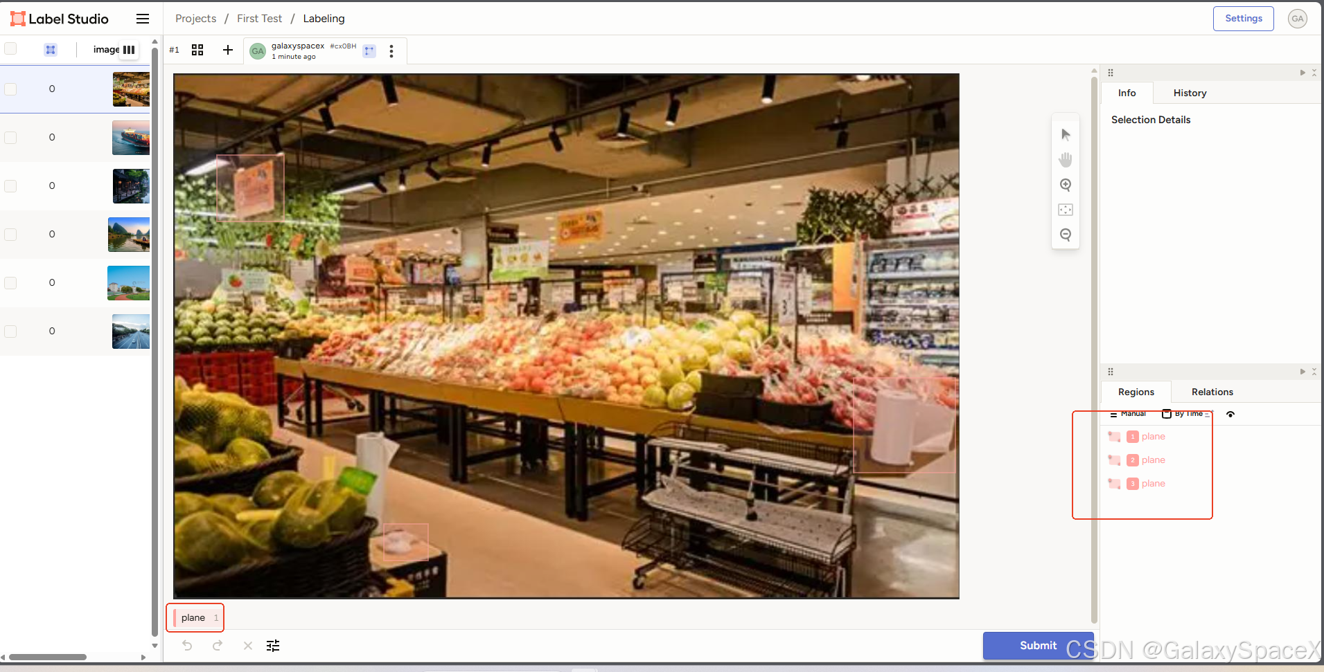 保存后可以进行标注,标注要先选择标签,然后再图中进行选择,右下角会出现标注的信息