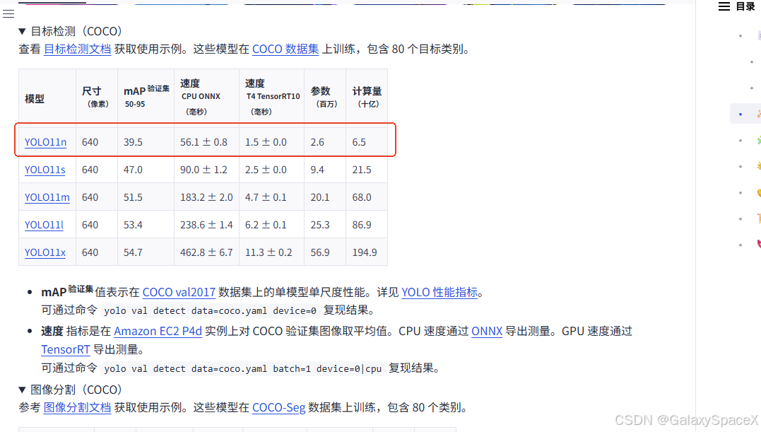 | YOLO11n ("nano" / 最轻量) | 最小模型 --- 参数量最少、计算量最小。 Ultralytics Docs+2mygit.top+2 | 推理最快、资源消耗最低,适合边缘设备、实时推理、计算资源受限的场景,但精度/检测能力相对较低。 wiki.walnutpi.com+1 |