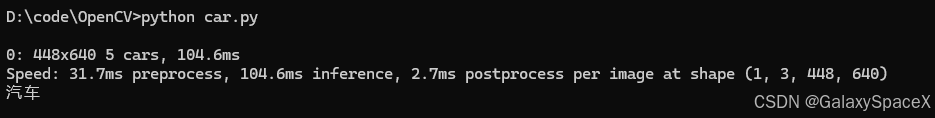 存在汽车则会输出,不存在则未识别到汽车,不输出