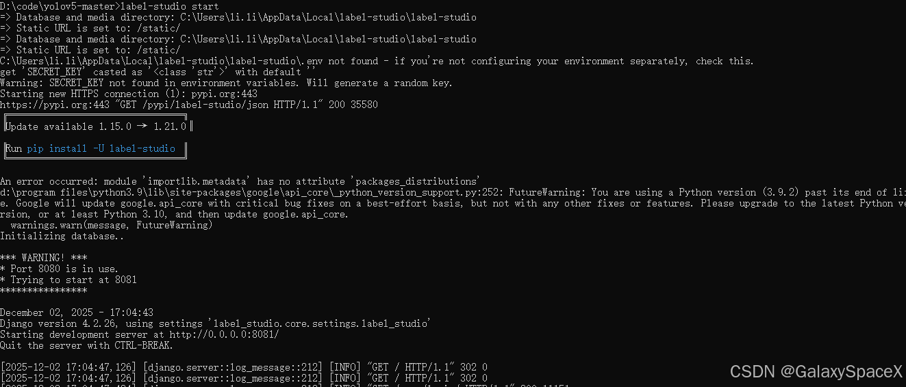 pip install label-studio -i https://pypi.tuna.tsinghua.edu.cn/simple