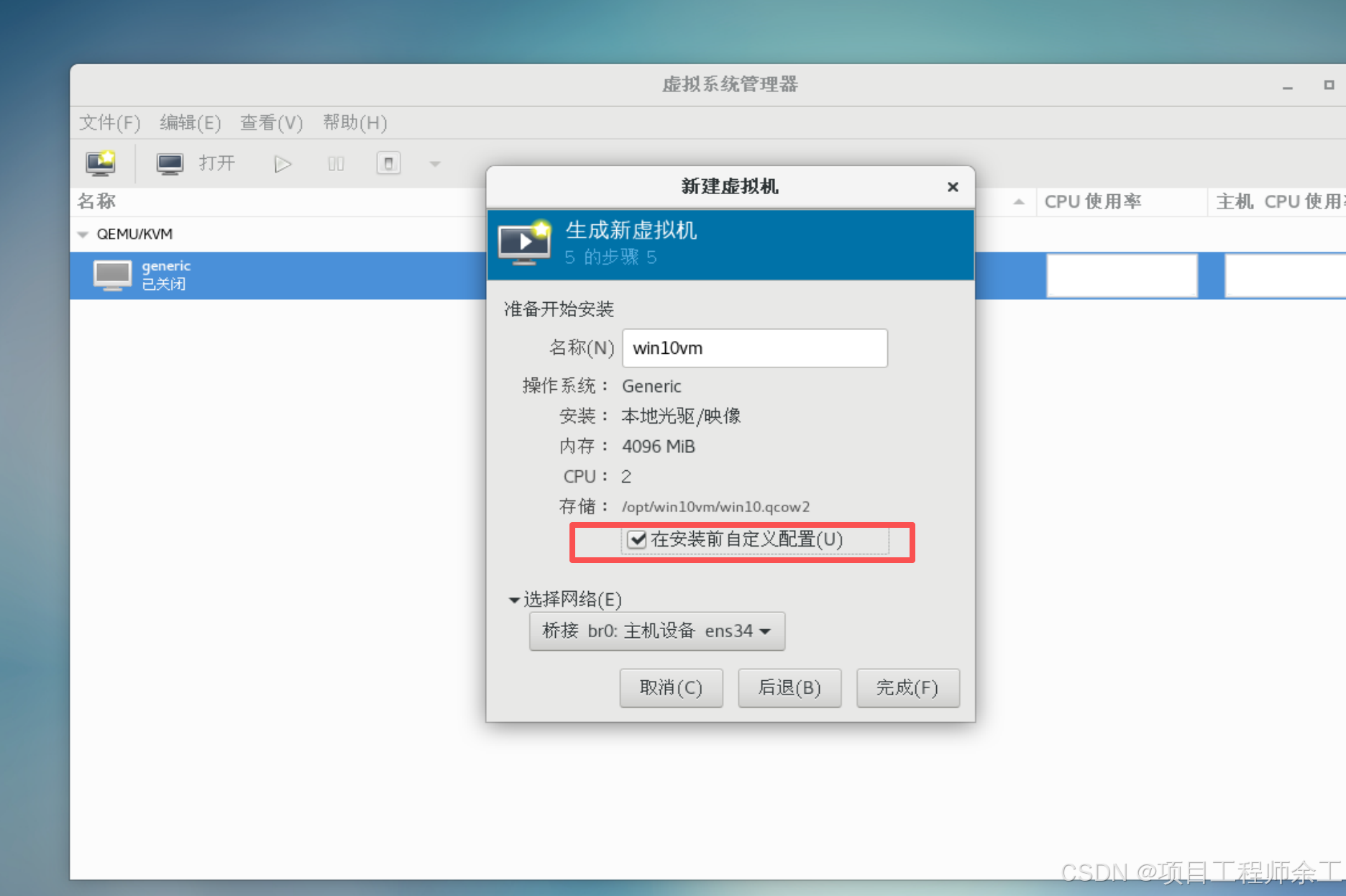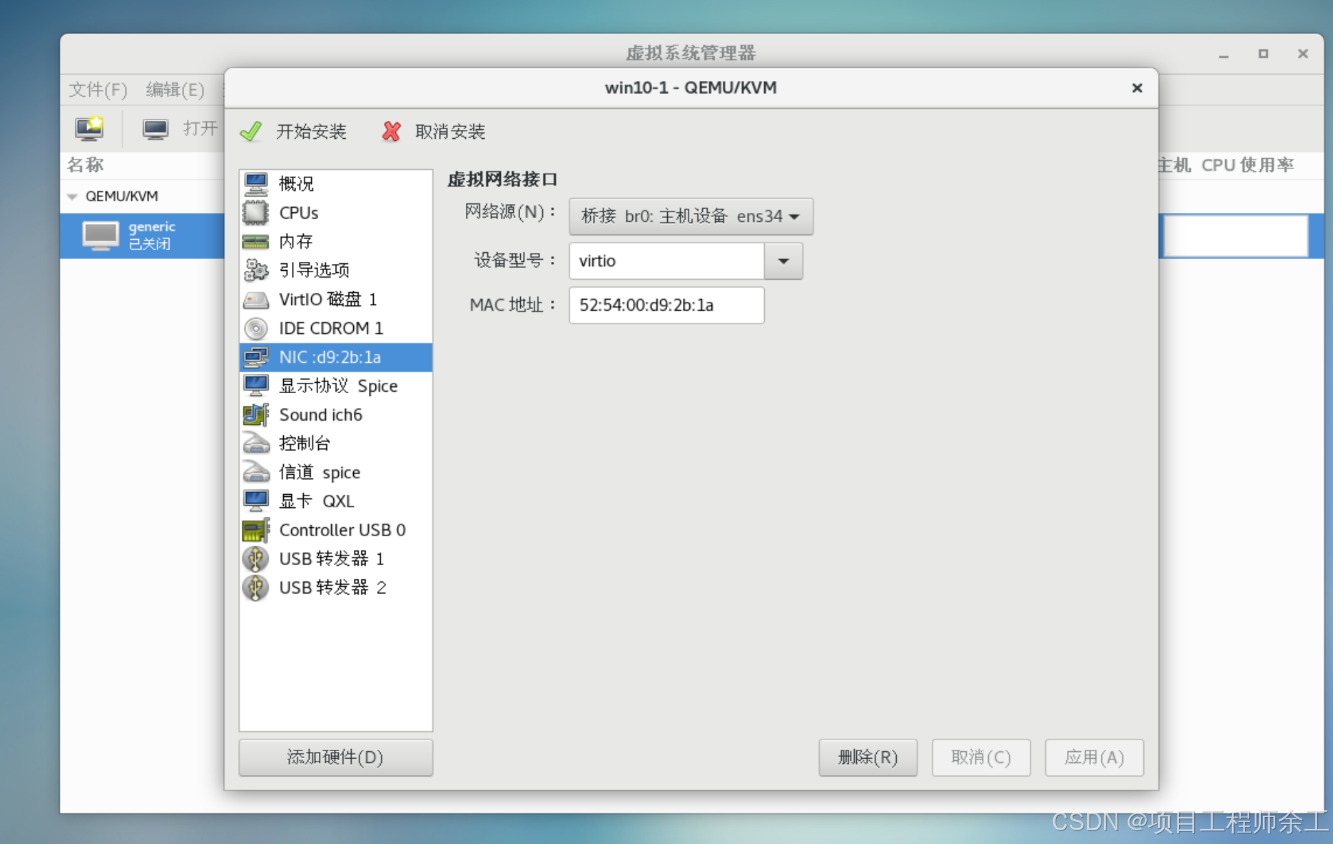 我用vm做的,所以加了两个网卡,一个ens33用的是nat主要是终端连接用的,把ens34和br0联接