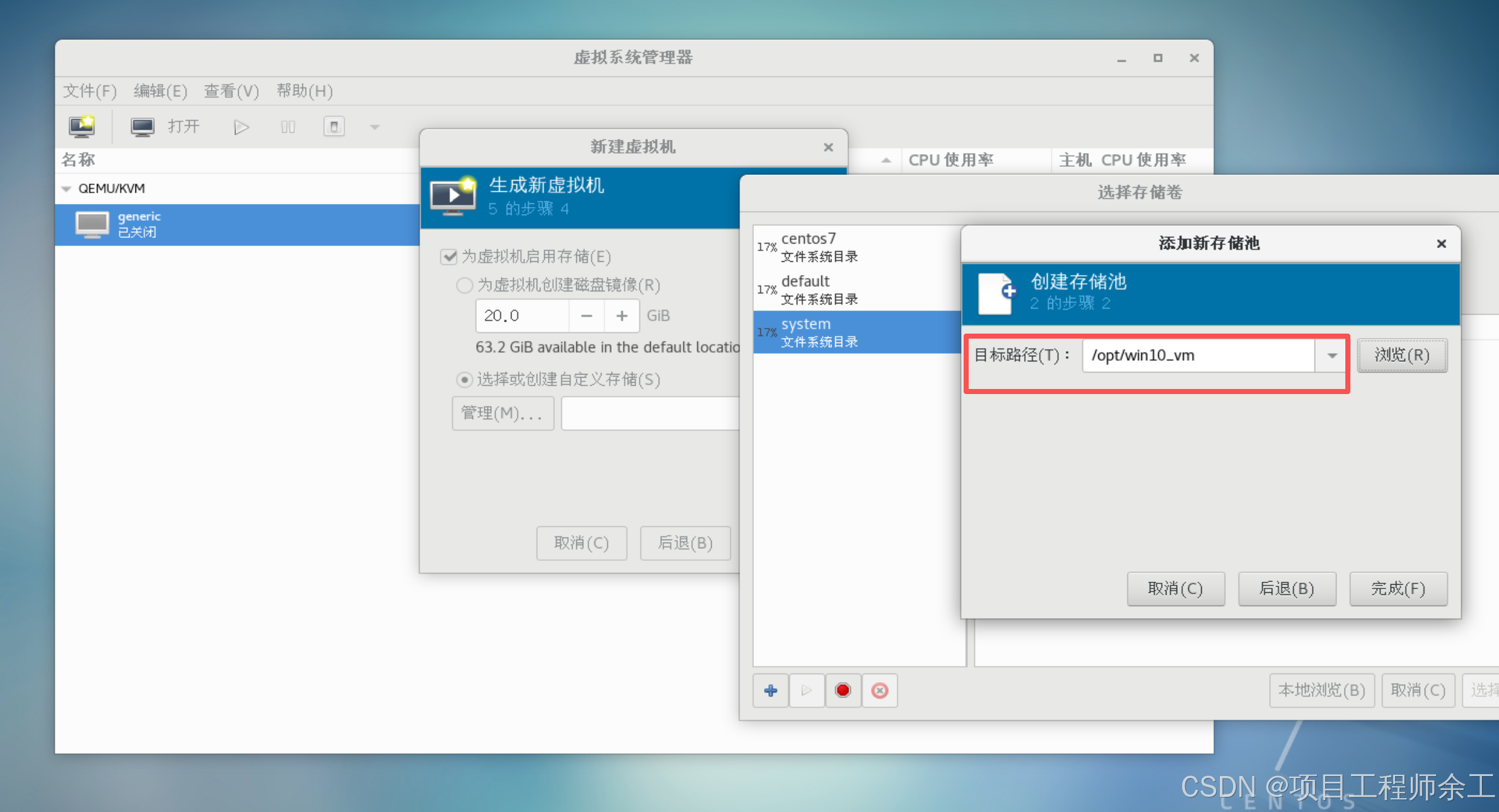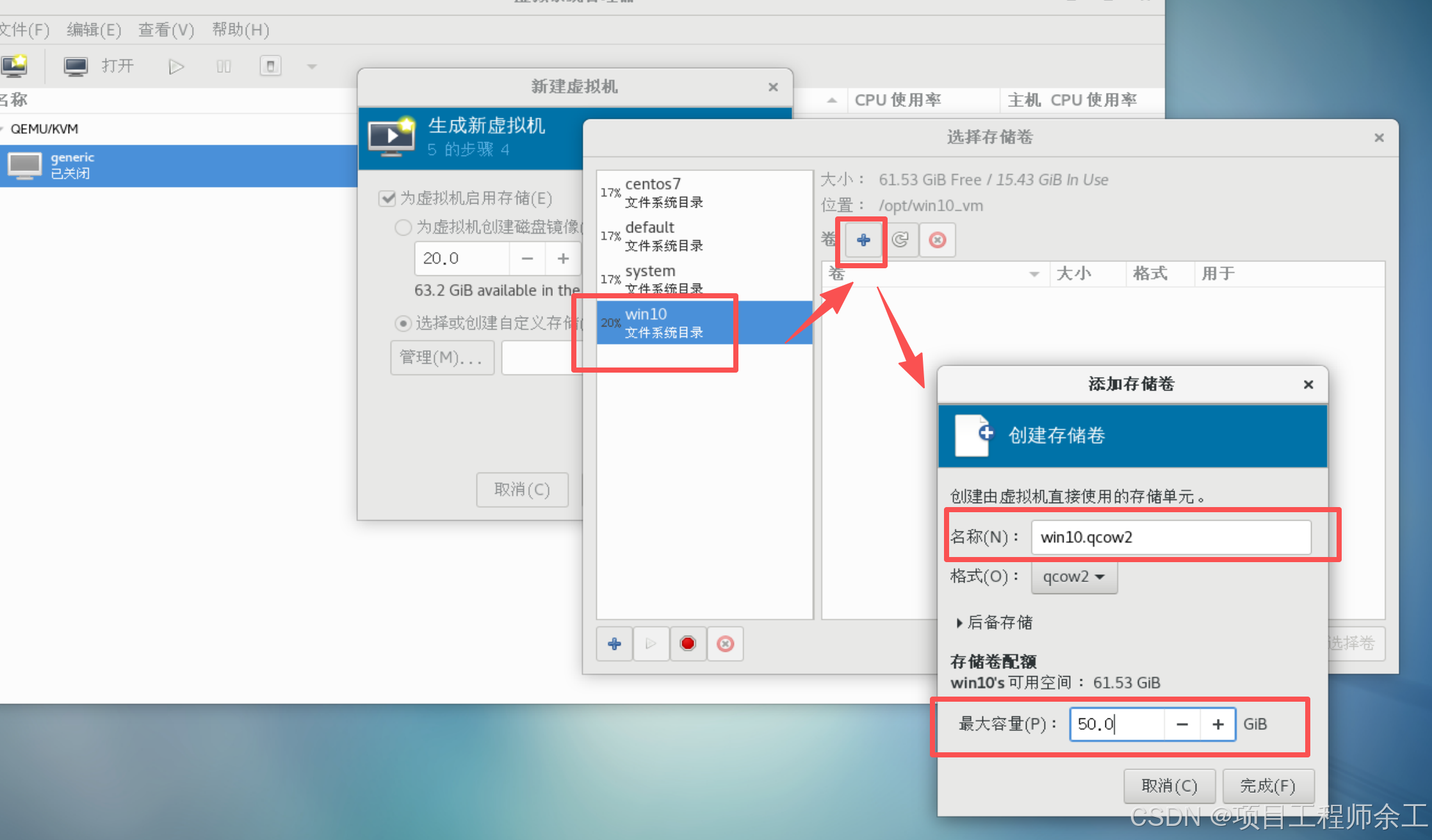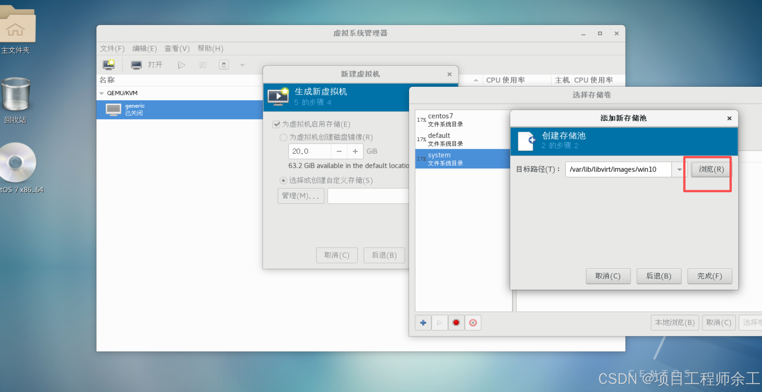 选择虚拟机的文件存放位置,这很难理解,主要是要把定义好要存放虚拟机文件的文件目录整到左边那个列里去,再选中左边那个列再增加才可以(先在宿主机上mkdir创建自定义的虚拟机存储文件夹,一个虚拟机一个)