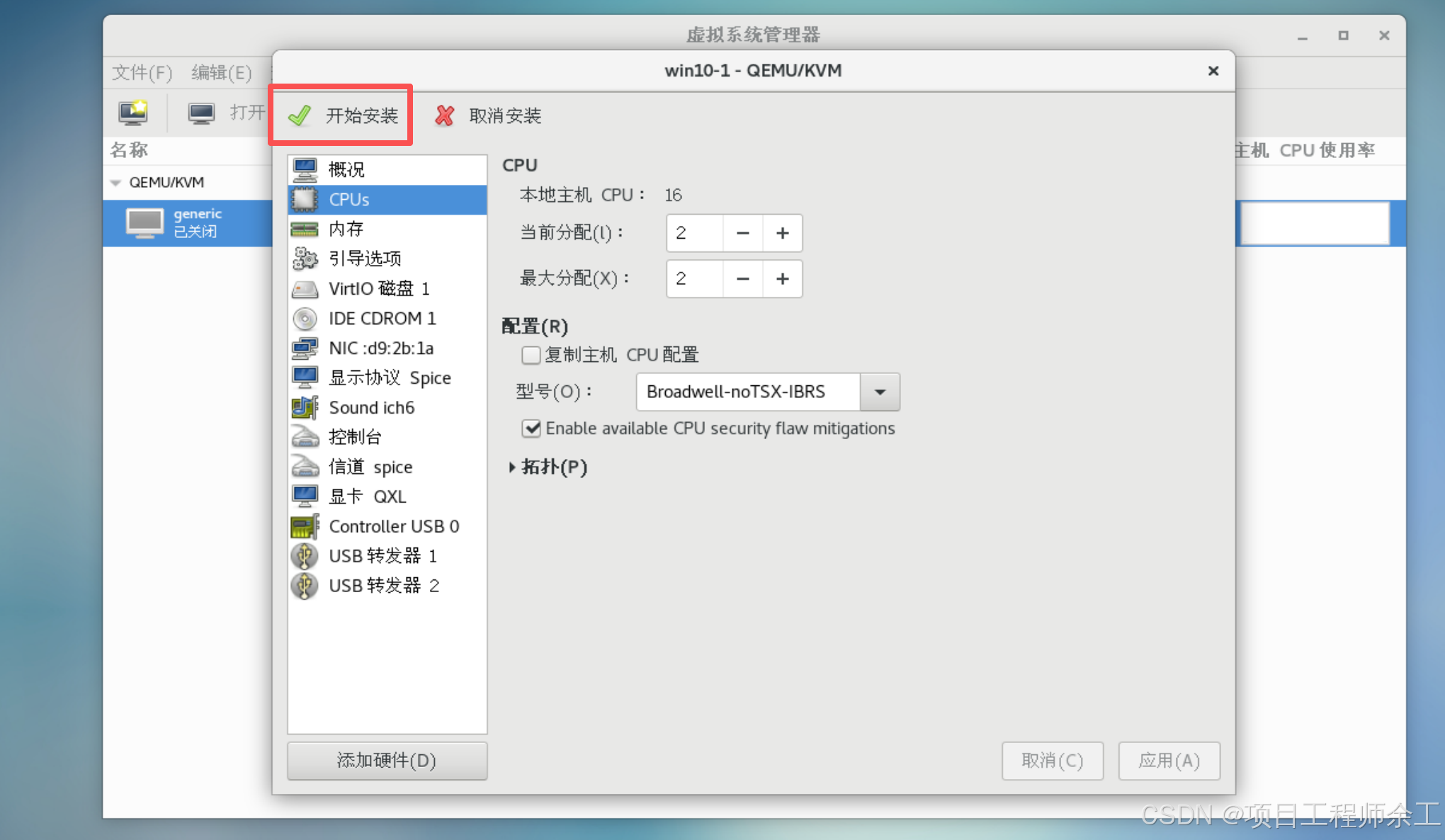 记得点这个开始安装,不点控制台上就不显示虚拟机了,非常难受