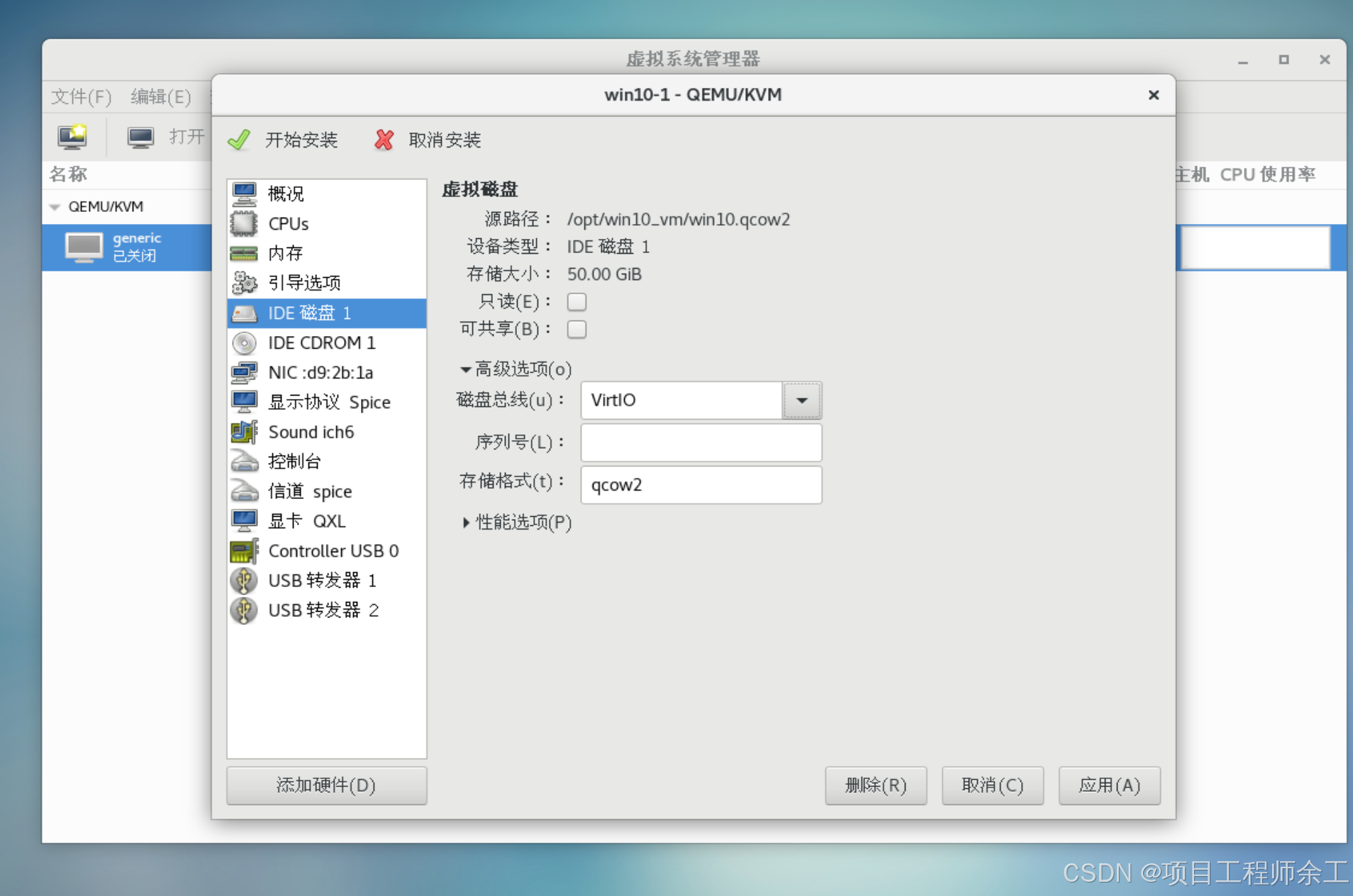 这里勾上,如果虚拟机装的是linux系统,可以直接改成virtIO模式,改和不改资源消耗区别非常大,类似于vm tools工具