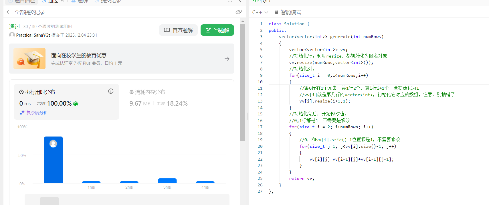 vector一维数组已经基本掌握了,那二维数组呢? 用一道题来理解它:杨辉三角