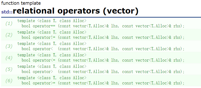 优先比较 size,其次从前往后比较数据大小,返回bool值。