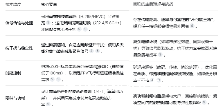 无人机高刷新率链路是实现实时高清影像回传与远程精准操控的核心,其技术难点主要集中在如何突破数据速率、传输距离与稳定性之间的"不可能三角" 。下面是其技术要点难点、主要运行方式与技术突破点的具体分析。