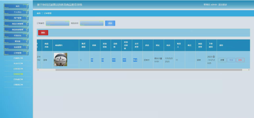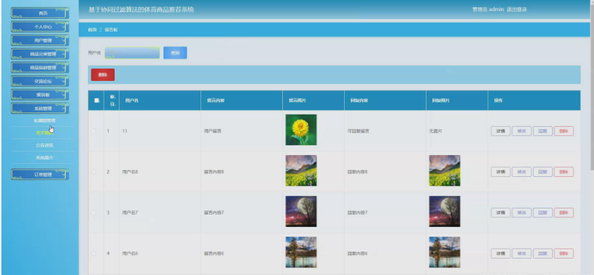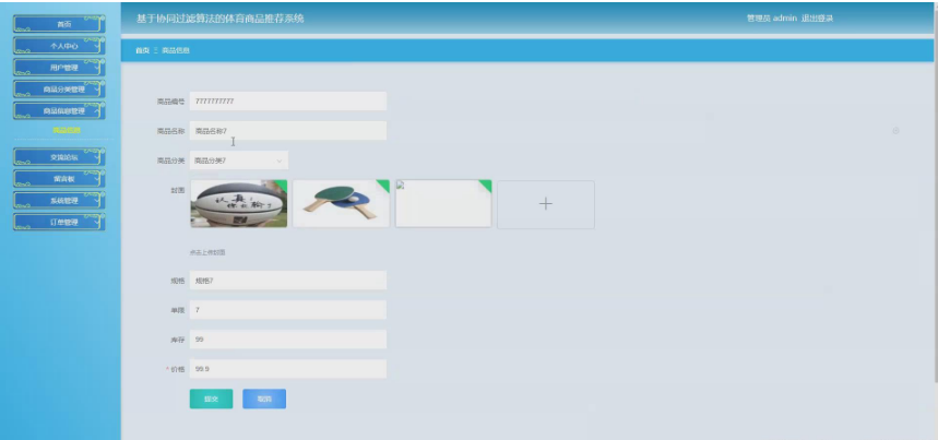 相比于传统的体育商品推荐方式,个性化智能的管理方式可以大幅提高体育商品推荐的管理效率,实现了个性化智能体育商品推荐的标准化、制度化、程序化的管理,有效地防止了体育商品推荐的随意管理, 功能主要包括首页、个人中心、用户管理、商品分类管理、商品信息管理、交流论坛、留言板、系统管理、订单管理等功能,从而实现个性化智能体育商品推荐方式,提高个性化智能体育商品推荐的效率。