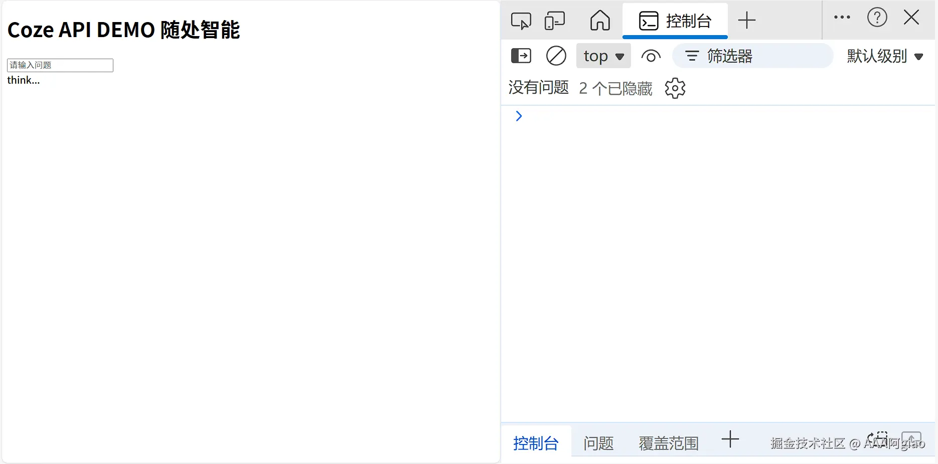 运行该文件后,在浏览器页面右键点击检查,打开控制台,输入问题并将焦点移出输入框,控制台将显示内容