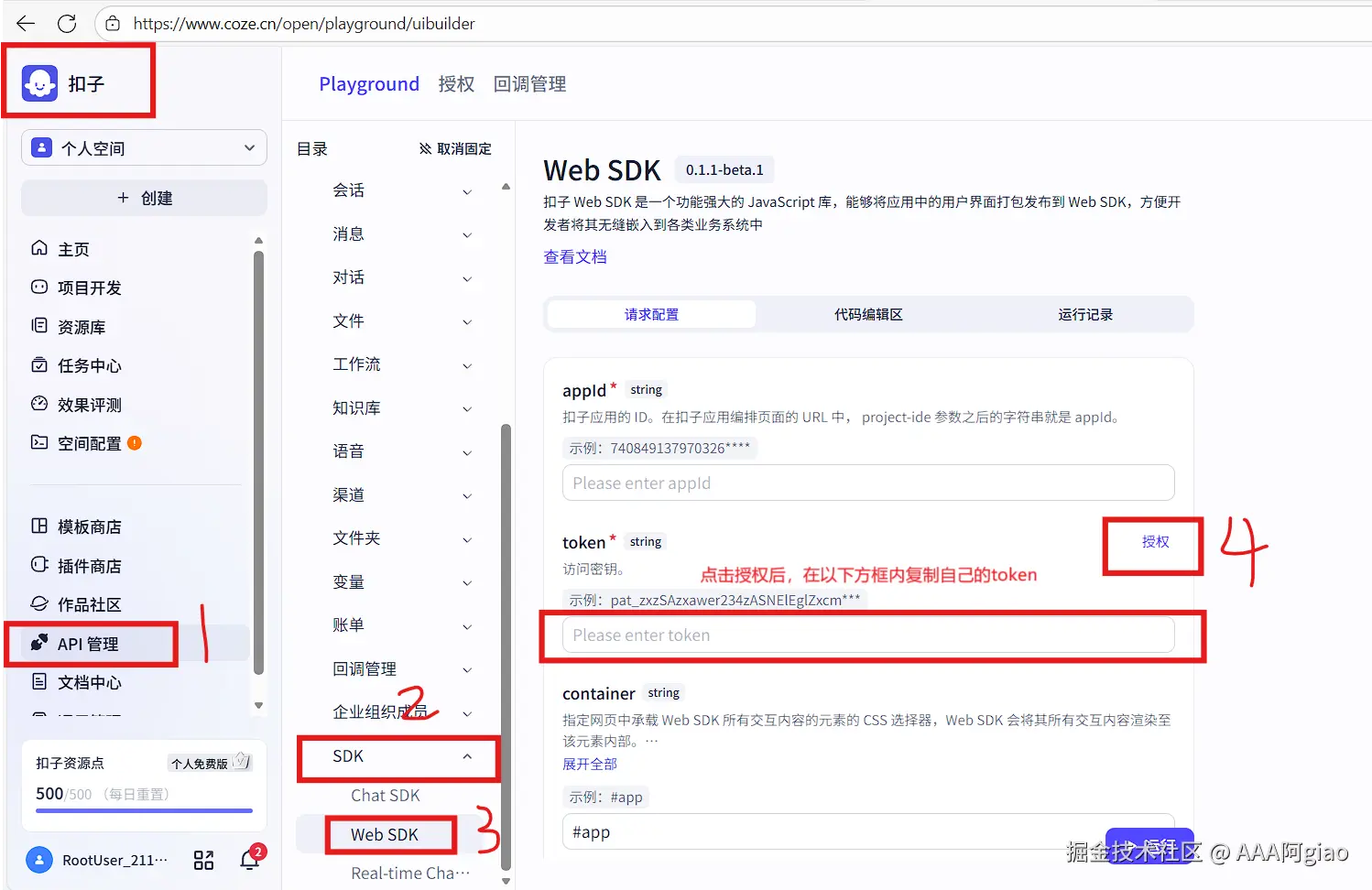 点击「发布」→「API 调用」,你会得到两个关键信息: