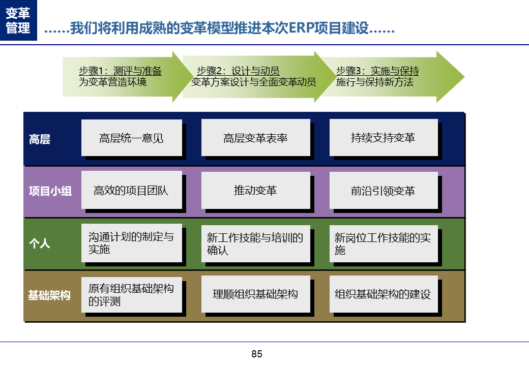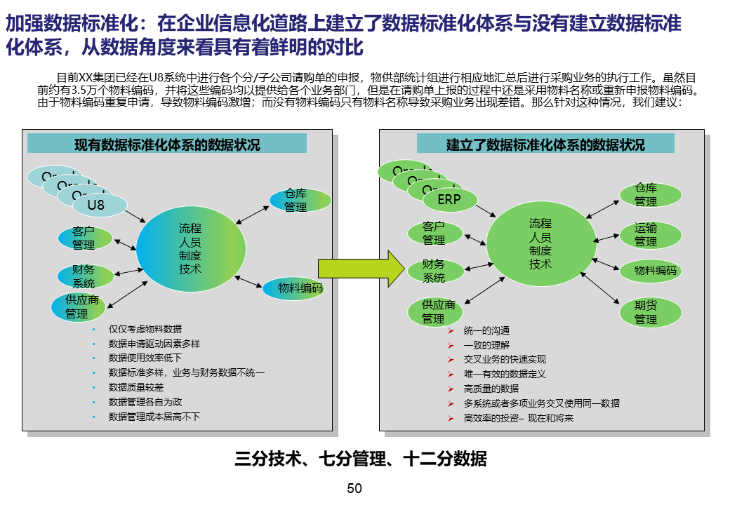 综上所述,集团应聚焦战略明确、管理基础夯实、需求分析精准三大方面,稳步推进信息化建设,打造高效、协同的一体化ERP集中管控平台。
