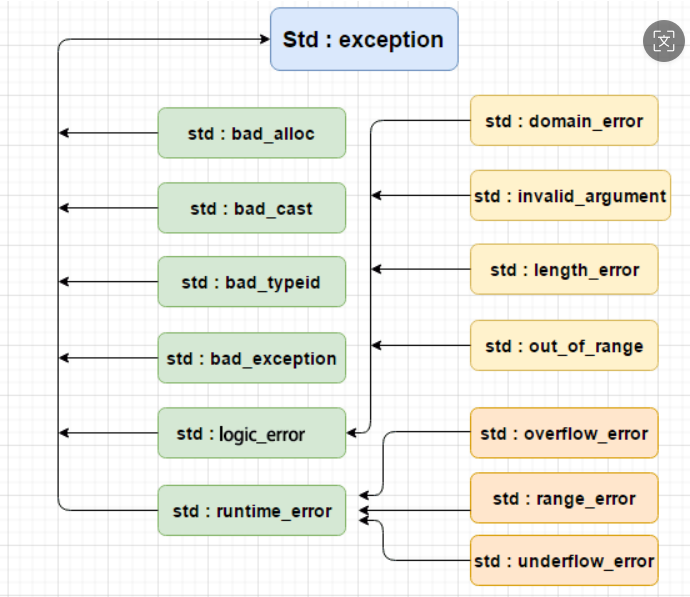 C++ 提供了一系列标准的异常,定义在 中,我们可以在程序中使用这些标准的异常。它们是以父子类层次结构组织起来的,如下所示: