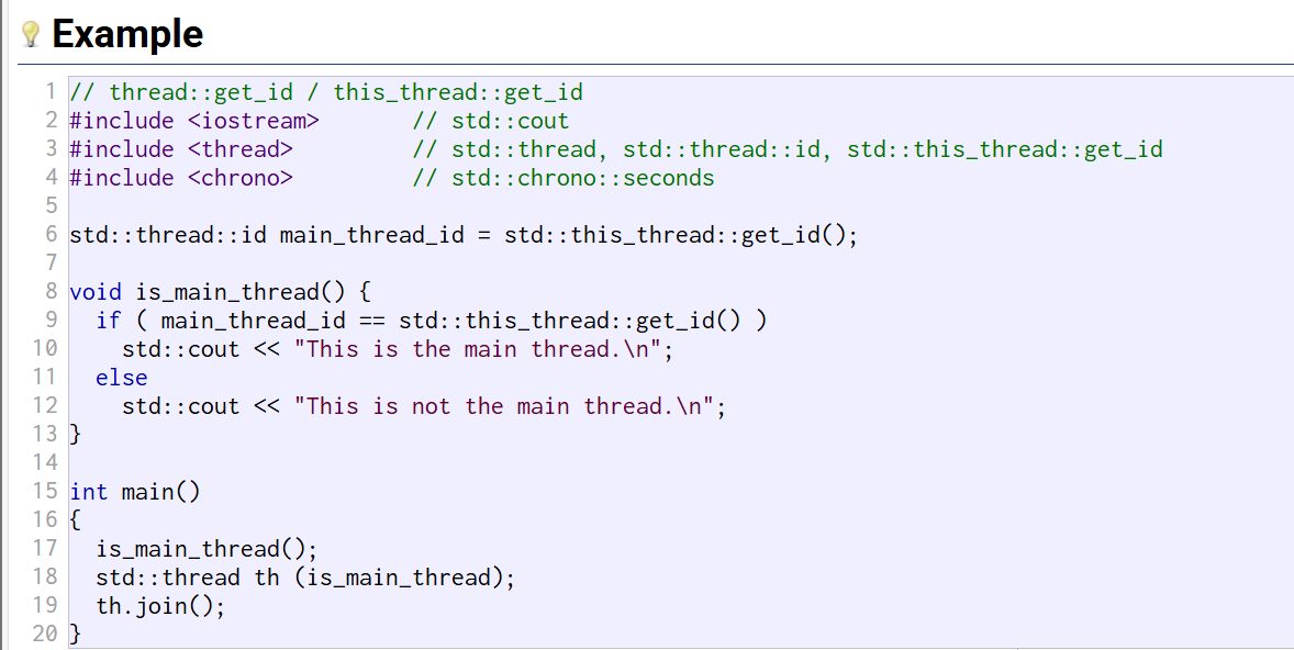 get_id() 的返回值类型为 id 类型, id 类型实际为 std::thread 命名空间下封装的一个类,该类中包含了一个结构体