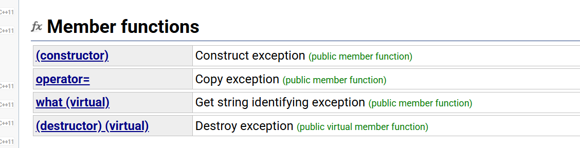 这个是c++实现的异常,在头文件<exception中>,可以看到它的基类的what函数就是虚函数,所以后面的只要重写,然后实现多态即可