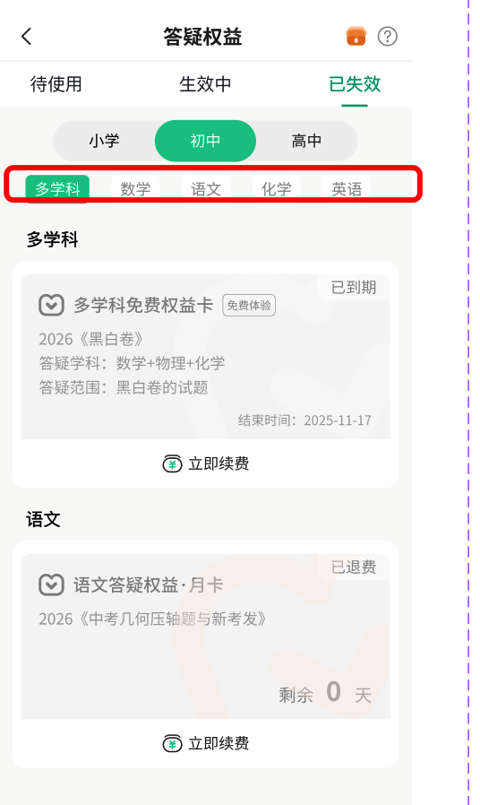 3: 付费购买的答疑卡按照购买答疑卡的时间倒序排列