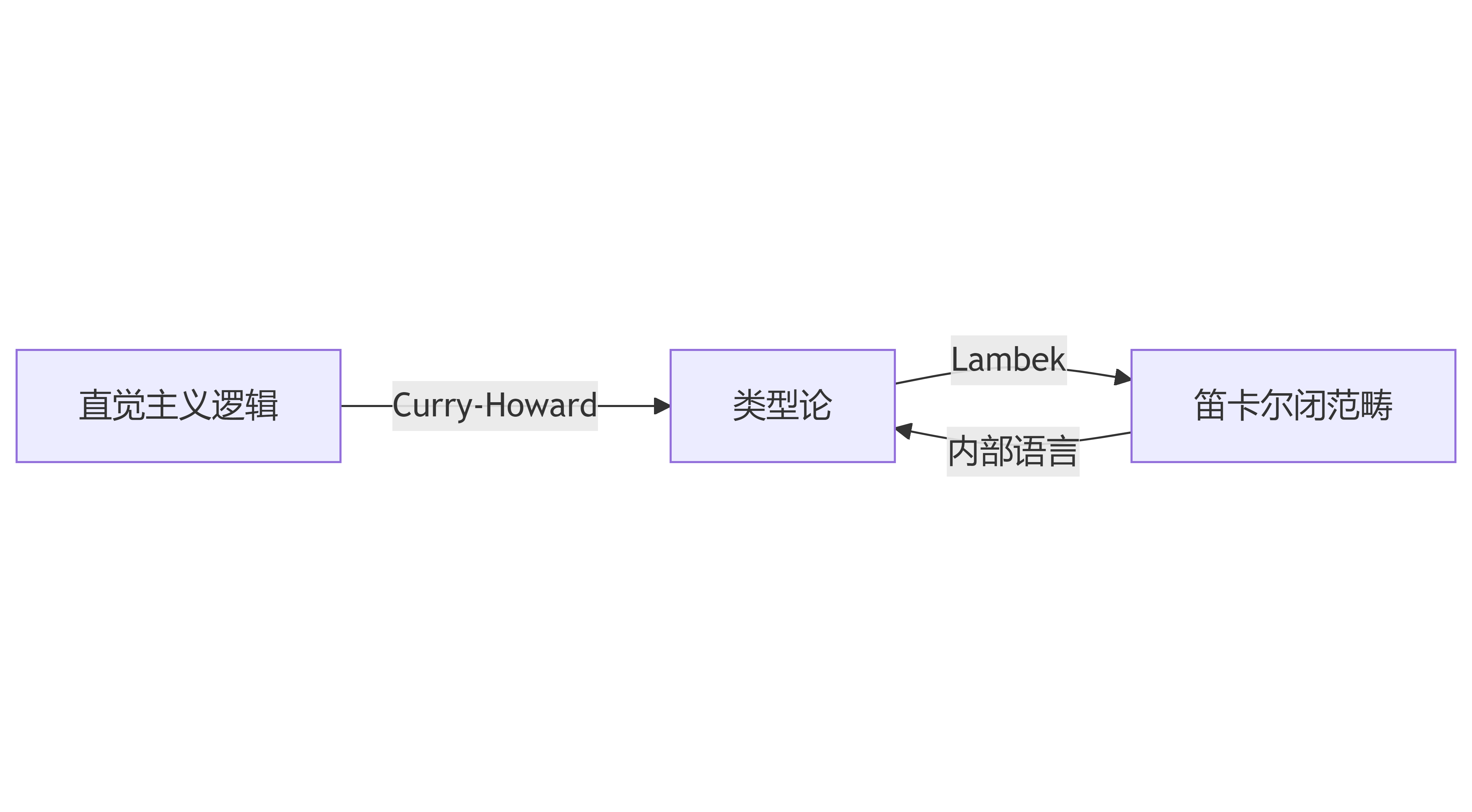 * **范畴**:CCC 中的对象 ↔ 直觉主义逻辑的语义模型。