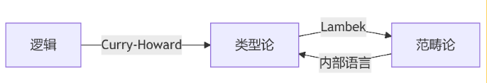 * 范畴逻辑(Categorical Logic)将类型系统映射到范畴结构,简化证明规则(如超理论 Hyperdoctrines 描述量词)。