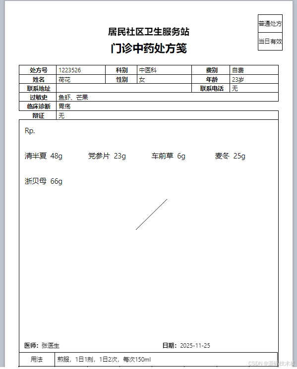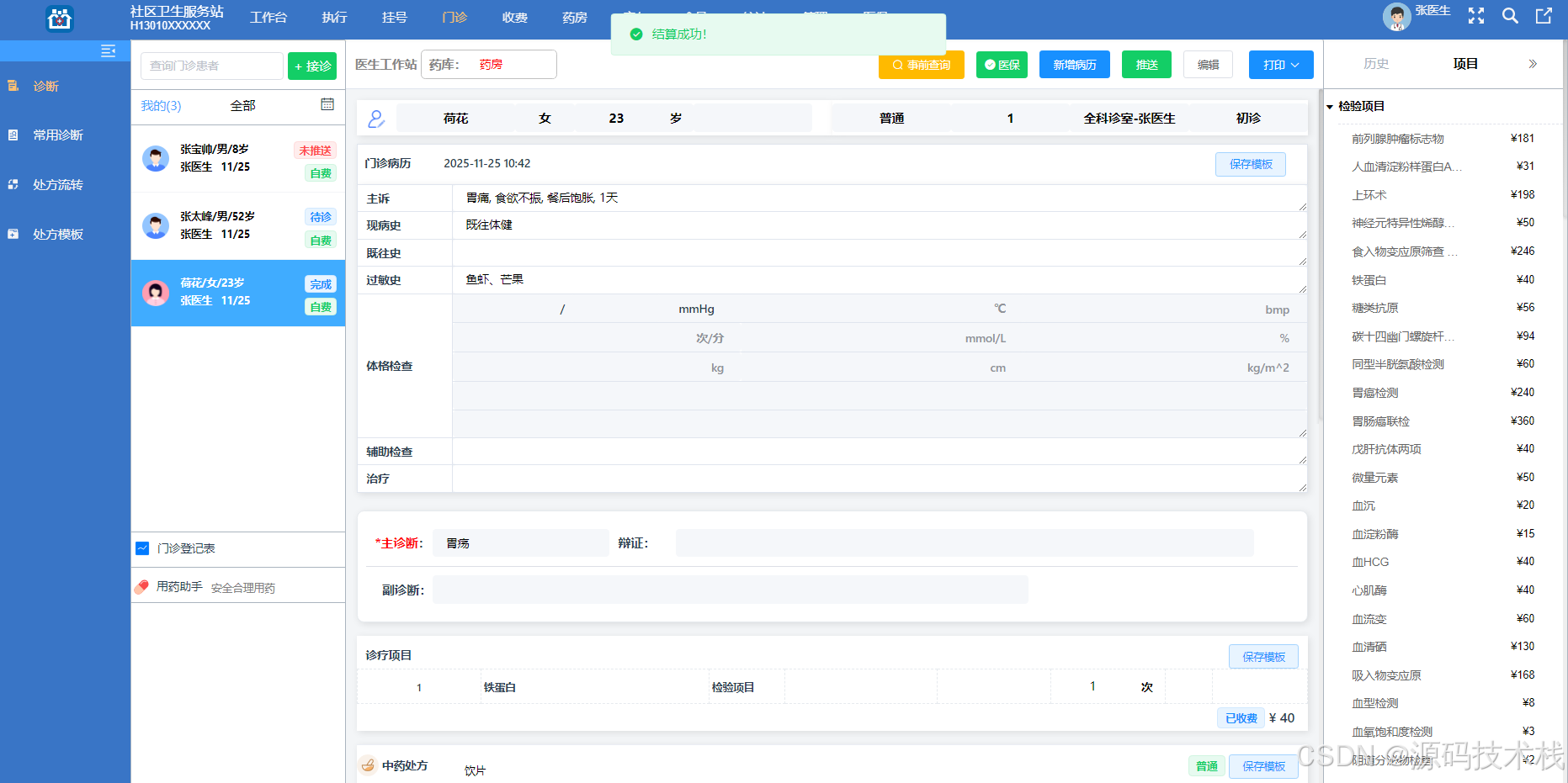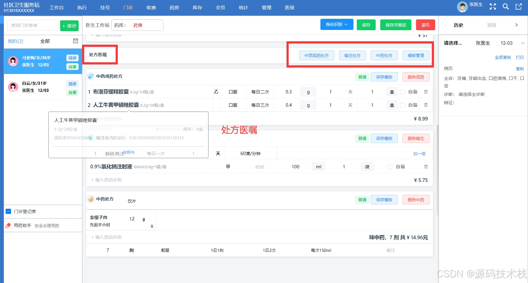 满足基础诊疗需求,医生通过系统快速开具电子处方、记录病历,自动关联药品库存。