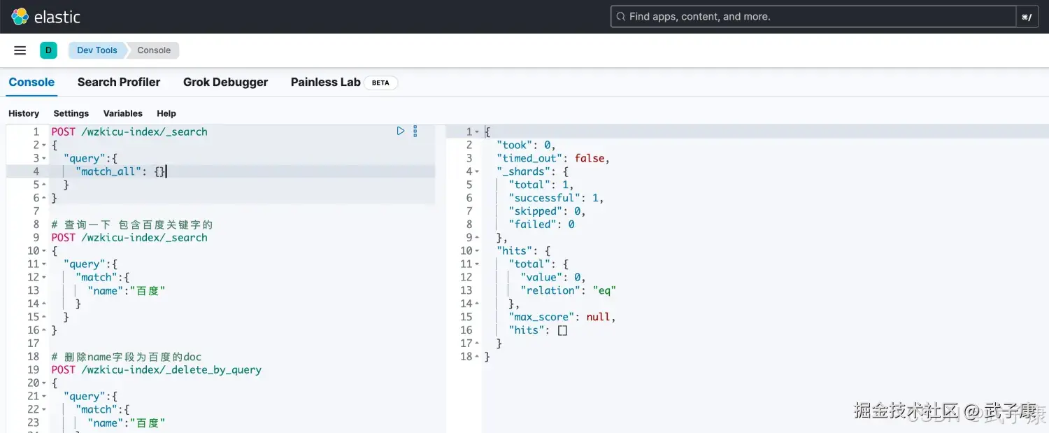 - 场景:在 Elasticsearch 7.3 中用查询 DSL 做全文检索,而不是靠 Kibana 点选和简单关键字搜索。
