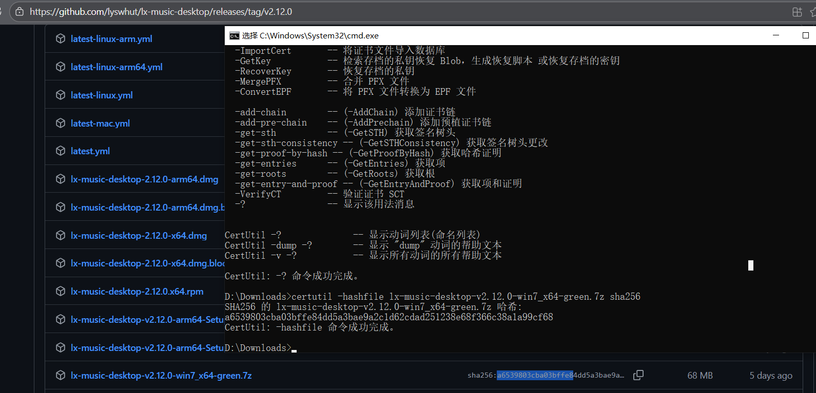 下载github仓库最新版本的软件,验证下载内容的完整,本地生成的sha256的摘要信息和网站上提供的一致,则能够保证完整性;