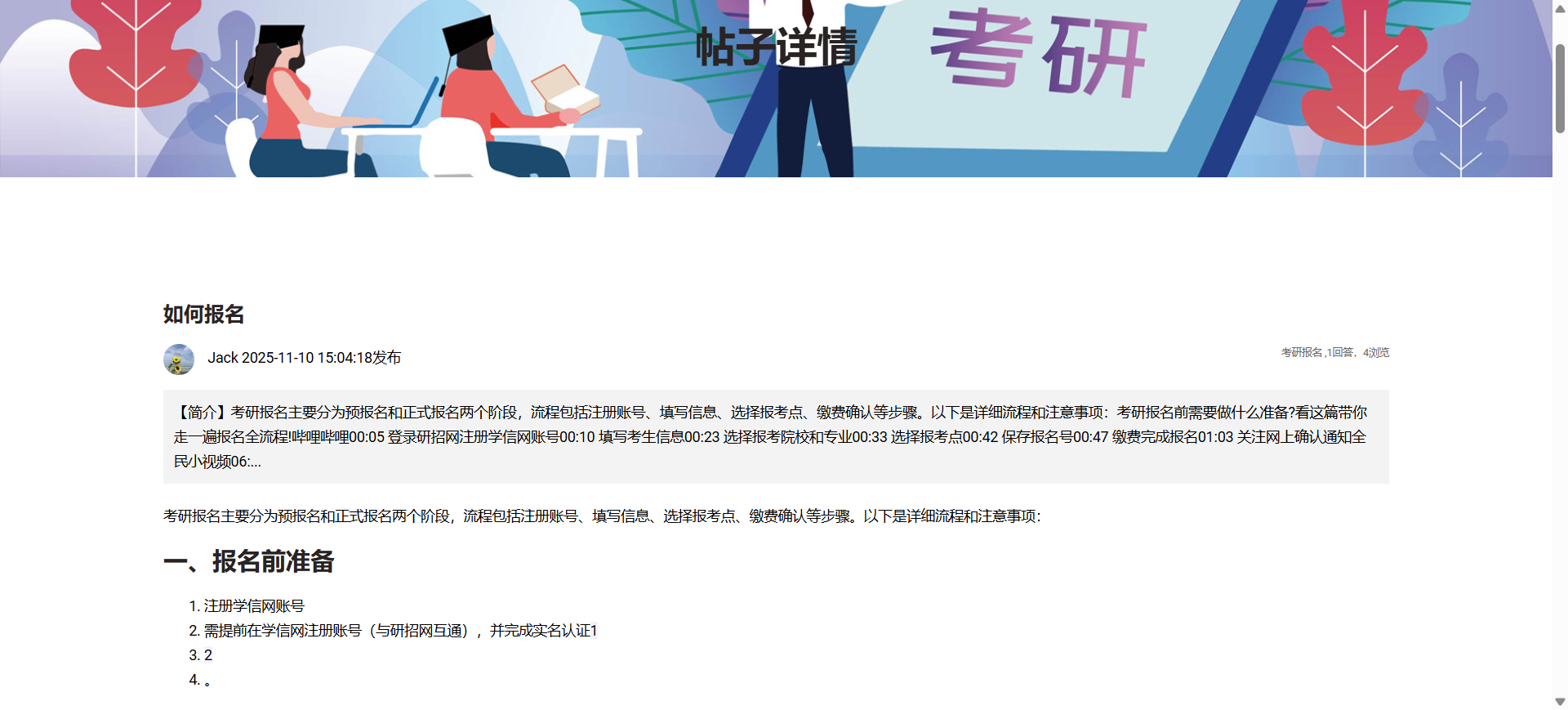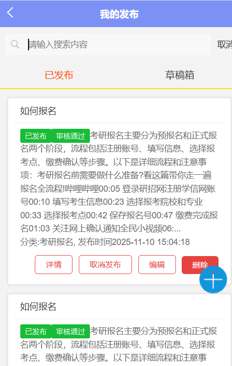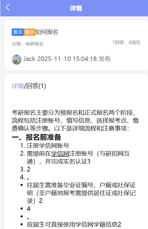本系统是一个专注于考研主题的社区论坛网站及小程序 ,旨在为考研用户提供一个集资讯获取、学习交流、资源分享于一体的综合性平台。核心价值在于通过社区互动和信息发布,帮助用户高效备考,并提供管理员审核机制以确保内容质量和社区秩序。