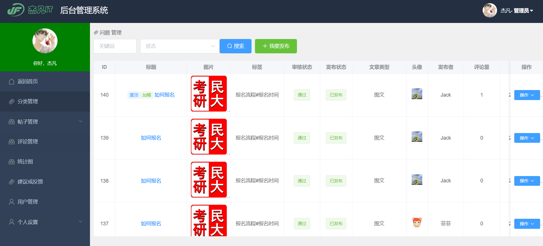 - 文章管理:设置文章的置顶和加精状态,管理文章分类,确保内容结构清晰。