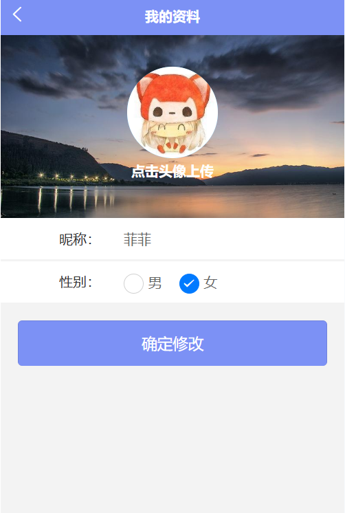 - 用户认证:通过手机号注册、登录系统,并可修改个人昵称、头像、性别等信息。