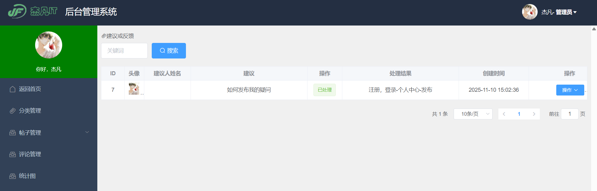 - 建议反馈处理:查看用户提交的建议和反馈,进行处理并记录处理结果。