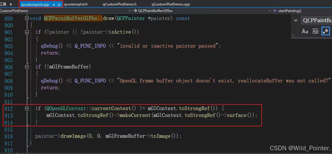 1.使用GPU加速后显示的折线图颜色异常,这时候需要我们修改QCustomPlot中的QCPPaintBuffrtGlFbo::draw代码,具体如图: