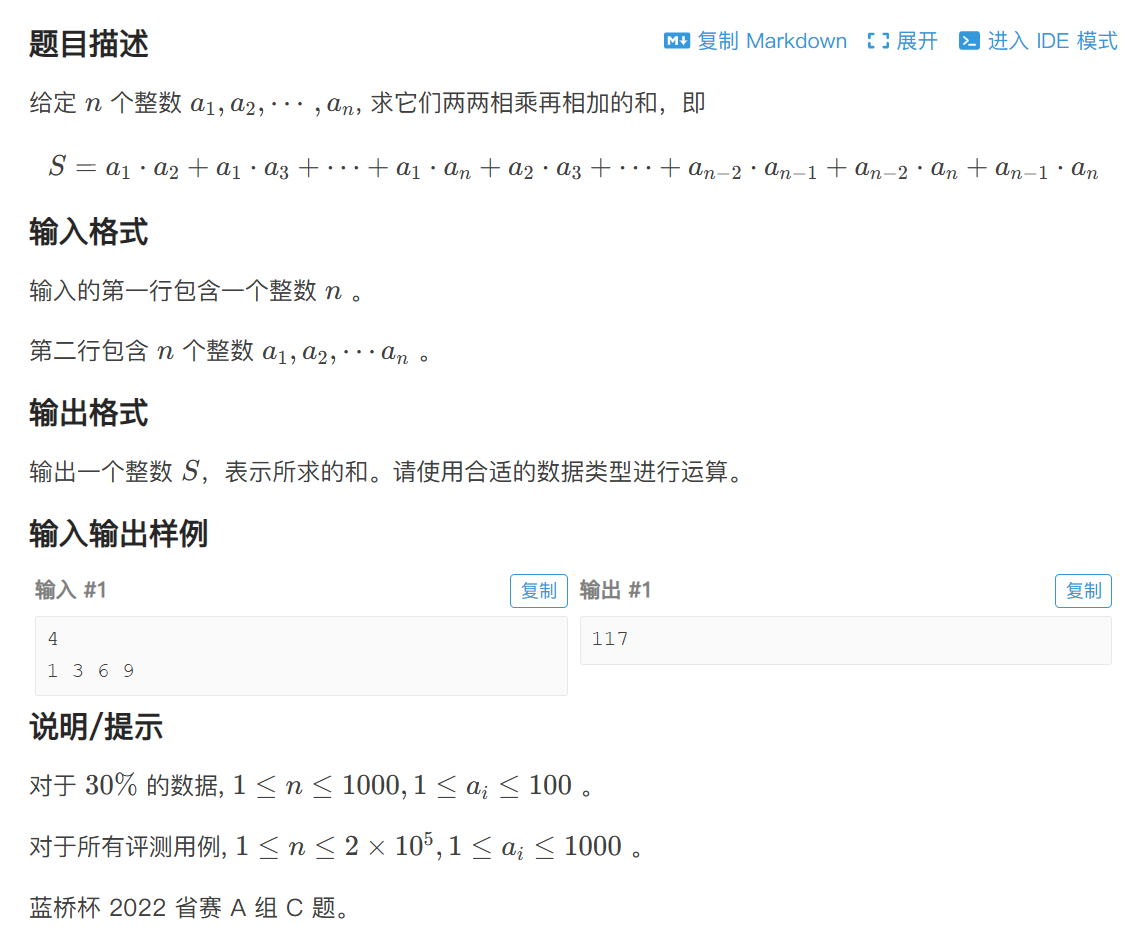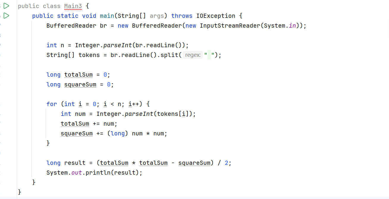 用双重循环会导致超时,可以使用平方和公式来计算从而避免超时