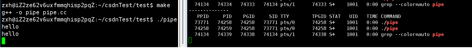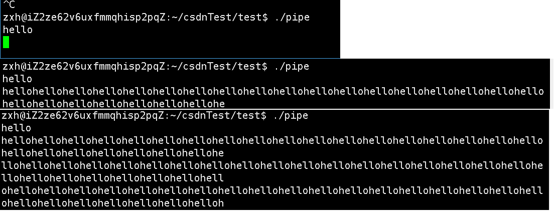现象很明显,当读端读得快,也要等数据写到管道之后再来读。即读端要等写端写