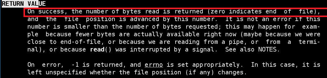 首先read的返回值是一个ssize_t类型,其实就是一个整形,表示读到的字节数,当读到的字节数为0时,表示已经读到了文件结尾。