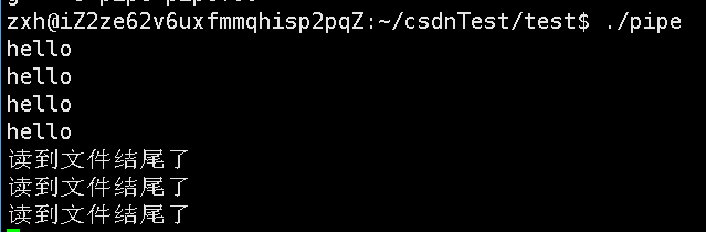 大约三秒之后,会读到文件结尾,因为三秒之后,我将文件写端关闭了,管道中是肯定不可能再有内容输入的,等价于读完了。所以,我们可以利用这个特性来判断是否需要关闭读端。