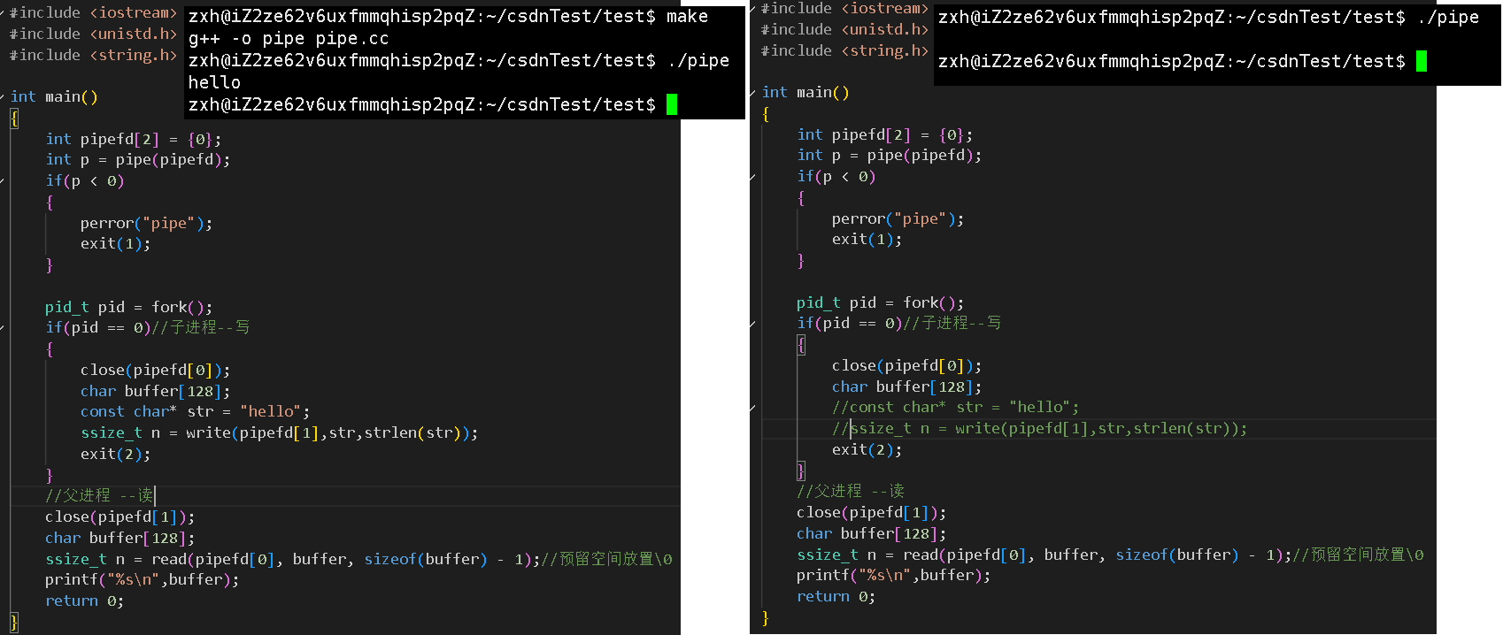 ssize_t n = read(pipefd[0], buffer, sizeof(buffer) - 1); // 预留空间放置\0