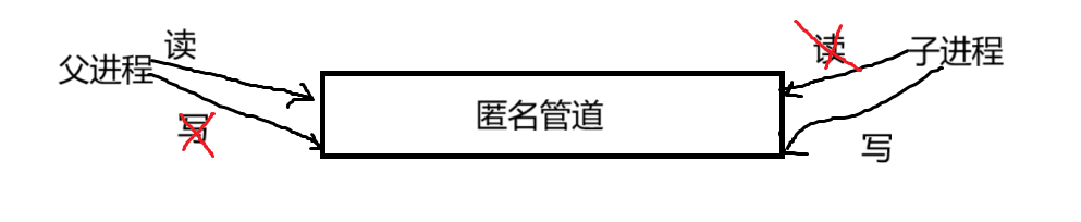 pipe需要传递一个数组,数组中0号下标表示对匿名管道的读,1号下标表示对匿名管道写。但是匿名管道是单工通信,只能有一方读,一方写。所以设计一个匿名管道的思路: