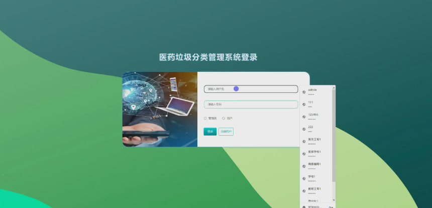 用户登入使用本系统涉到的功能主要有个人中心、医院垃圾信息管理、留言反馈管理等功能。