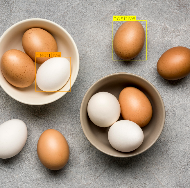 设置提示框,并显示出提示框位置.将一个褐色的鸡蛋设为正样本,一个白色的鸡蛋设为负样本。